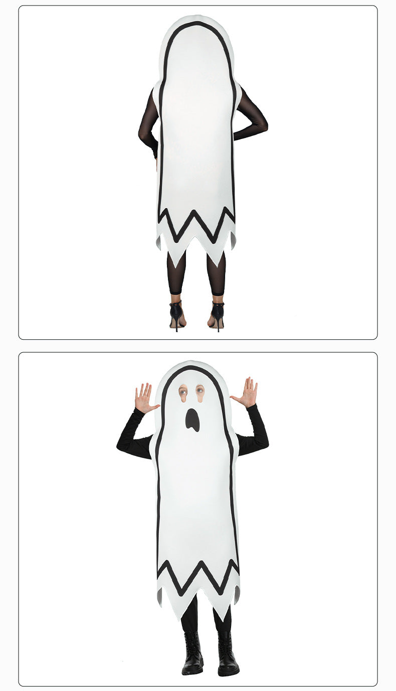 This costume is perfect for Halloween parties, where its ghostly theme adds to the festive atmosphere. It's also great for cosplay events, allowing you to portray a spooky character with authenticity. Stage performances benefit from its eye-catching design, ensuring you capture the audience's attention. Additionally, it can be used for themed photoshoots, school events, or even as a fun outfit for trick-or-treating. Its versatility makes it a must-have for anyone involved in costume-based activities, providing both entertainment and practicality.