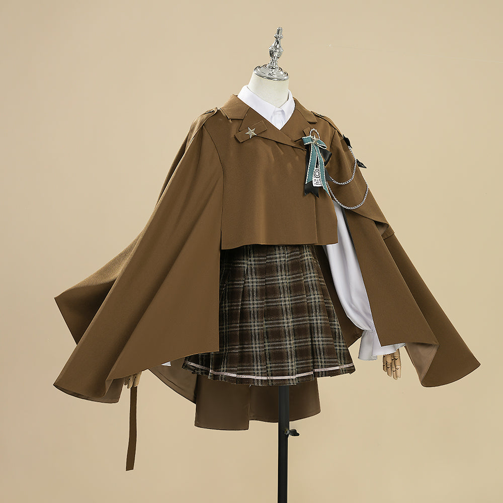 Product Description: This Arknights Truth Full Set is an officially licensed, meticulously detailed costume replicating the Operator Truth's signature attire from the popular tactical RPG. The set includes the iconic coat, dress, hat, gloves, and accessories, made from high-quality fabrics for an authentic look and feel.
