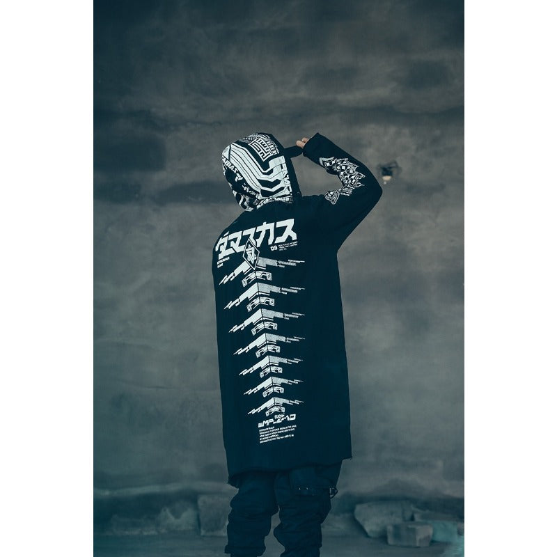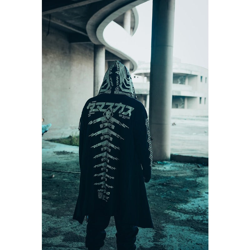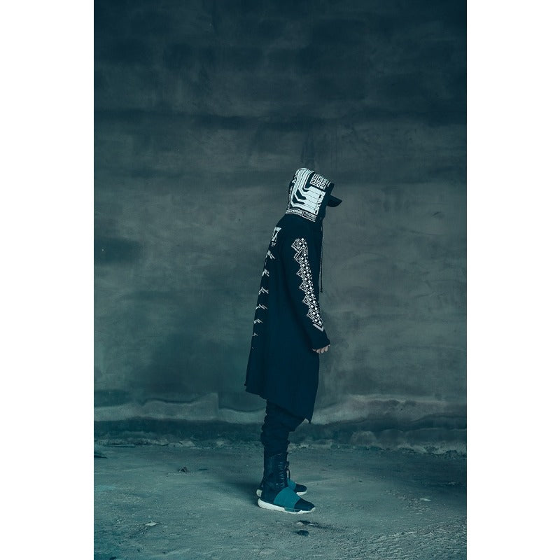 Embrace the future with our Cyberpunk Aesthetic Men's Asymmetrical Hooded Cloak Coat. This garment merges traditional robe silhouettes with futuristic techwear elements, creating a striking, dark, and functional statement piece. It is designed for those who stand at the intersection of style and subculture.