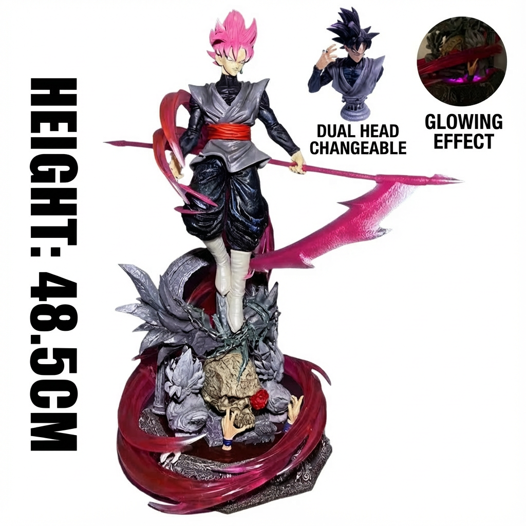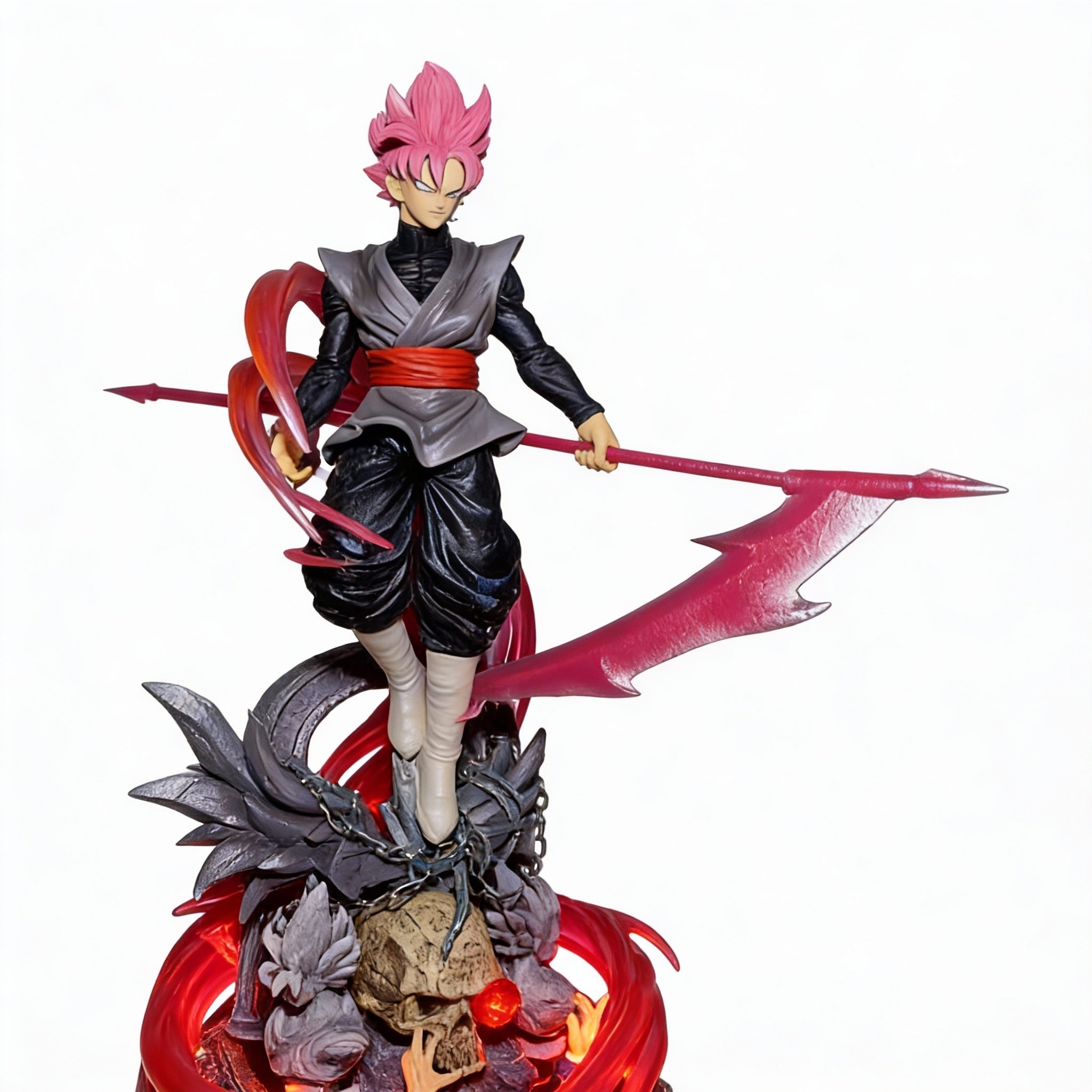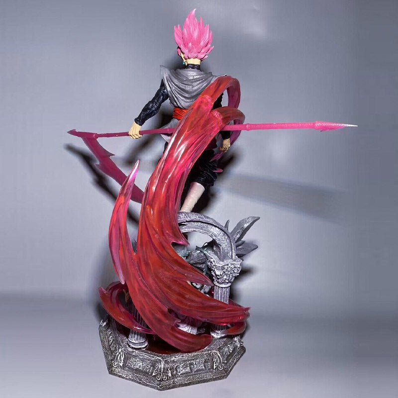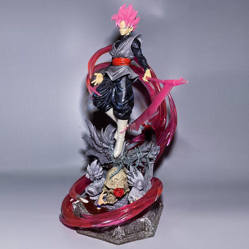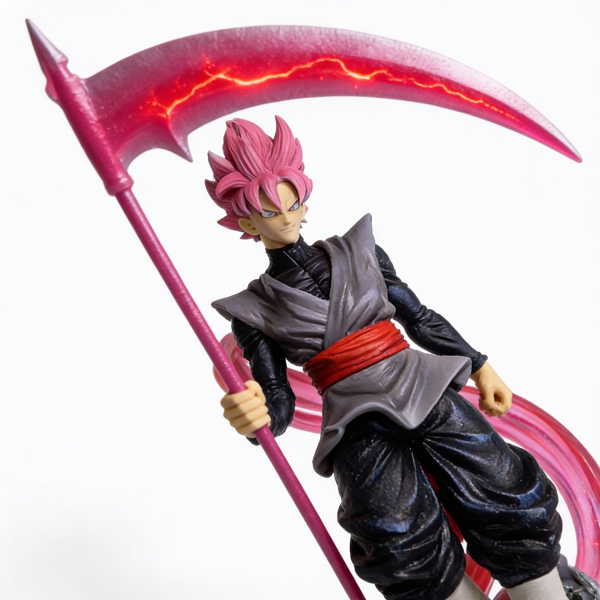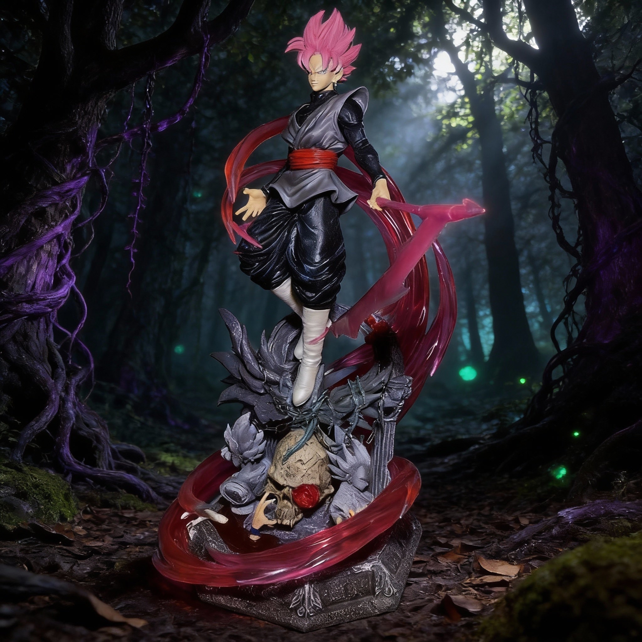 This highly detailed collectible figure showcases Goku from Dragon Ball Super in his formidable Super Saiyan Rosé 3 form, part of the "Majin Busters" series. It captures the character's powerful aura and iconic "Dark" aesthetic with precision.