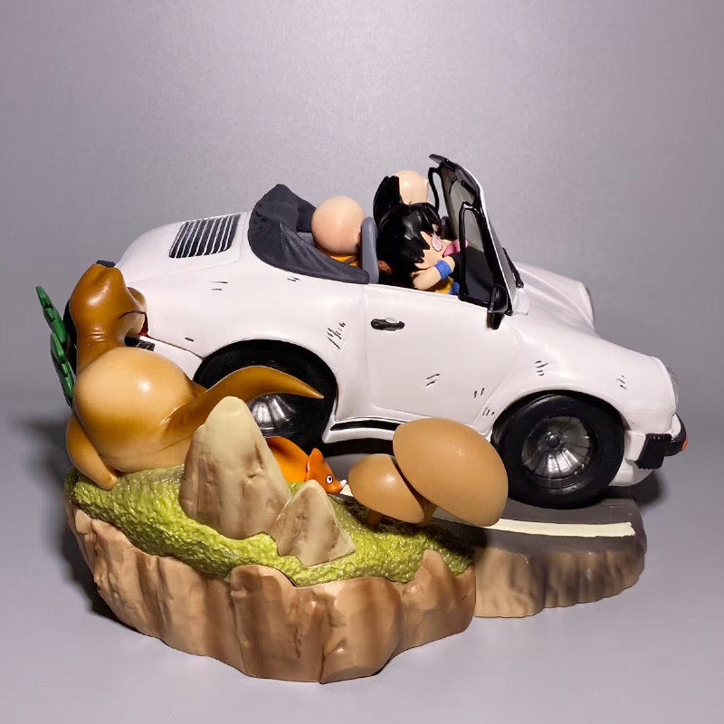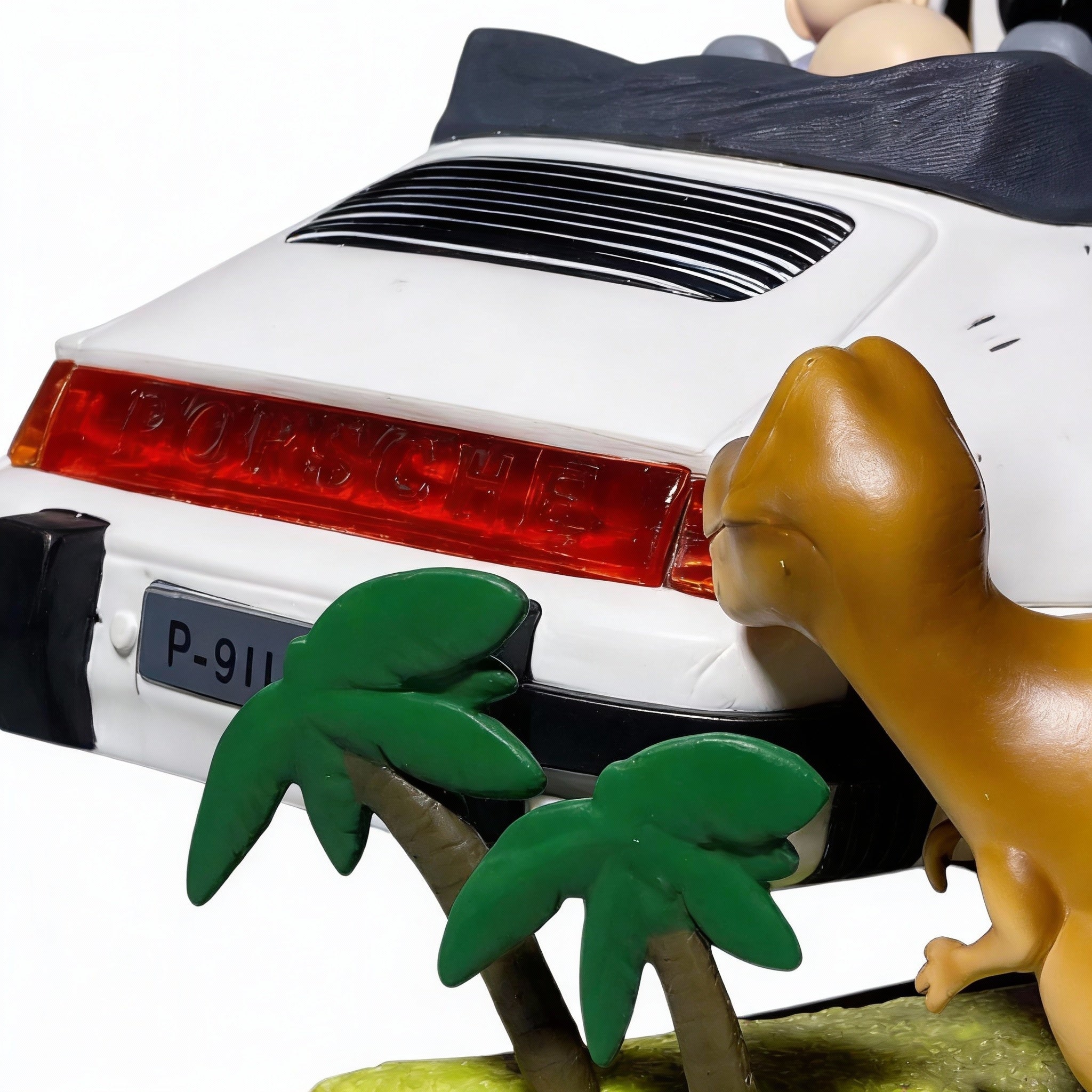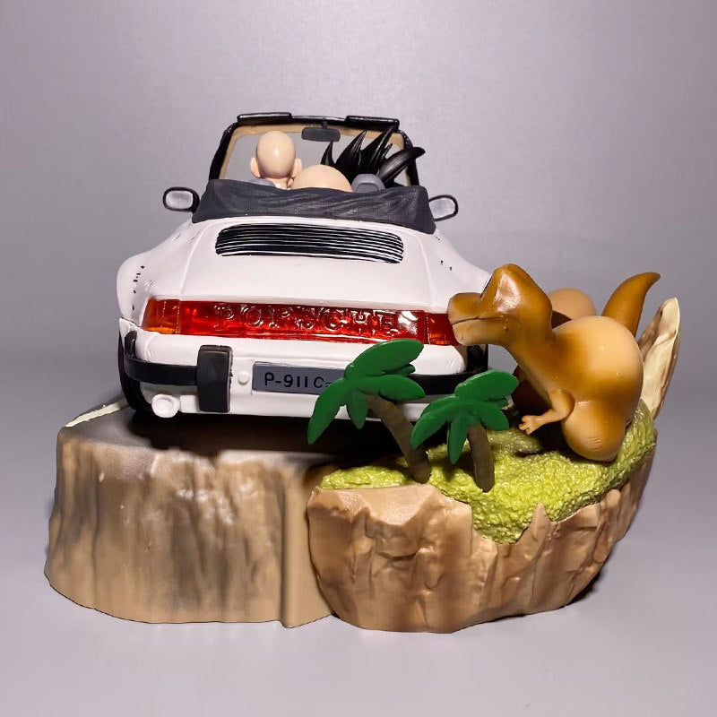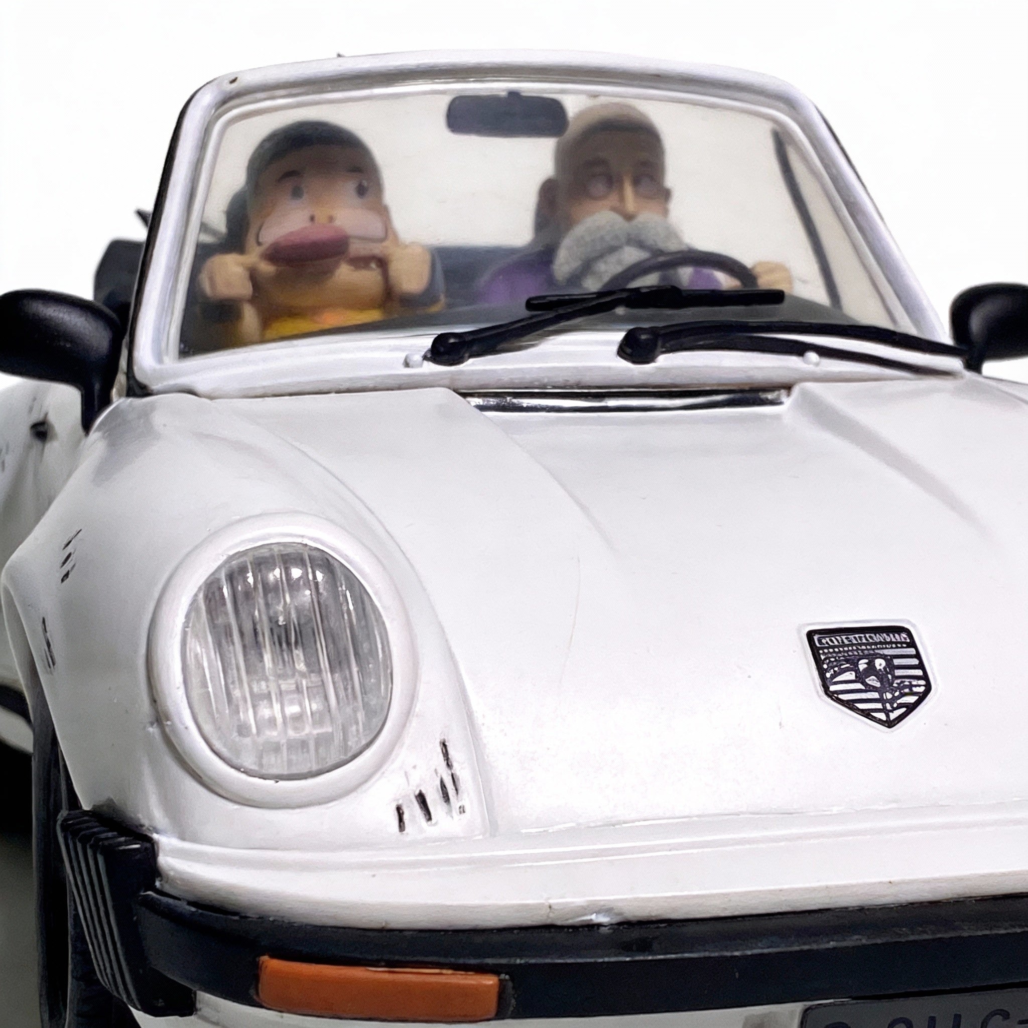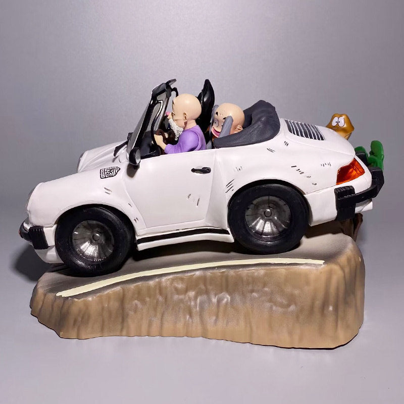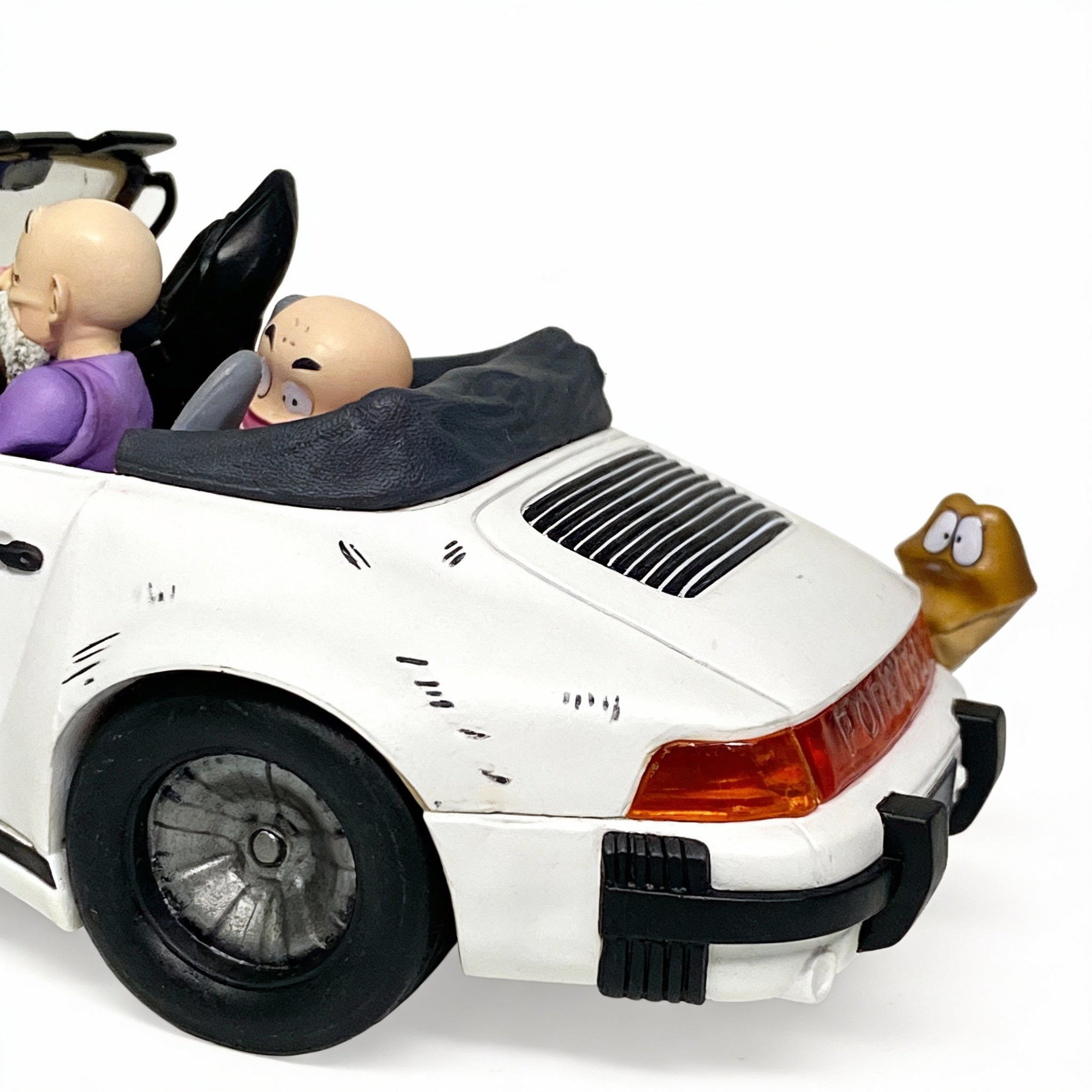 This meticulously crafted collectible statue captures a hilarious and iconic scene: Master Roshi from Dragon Ball joyriding a Porsche with Goku and Krillin. It perfectly blends anime nostalgia with high-end automotive culture, making it a unique display piece.