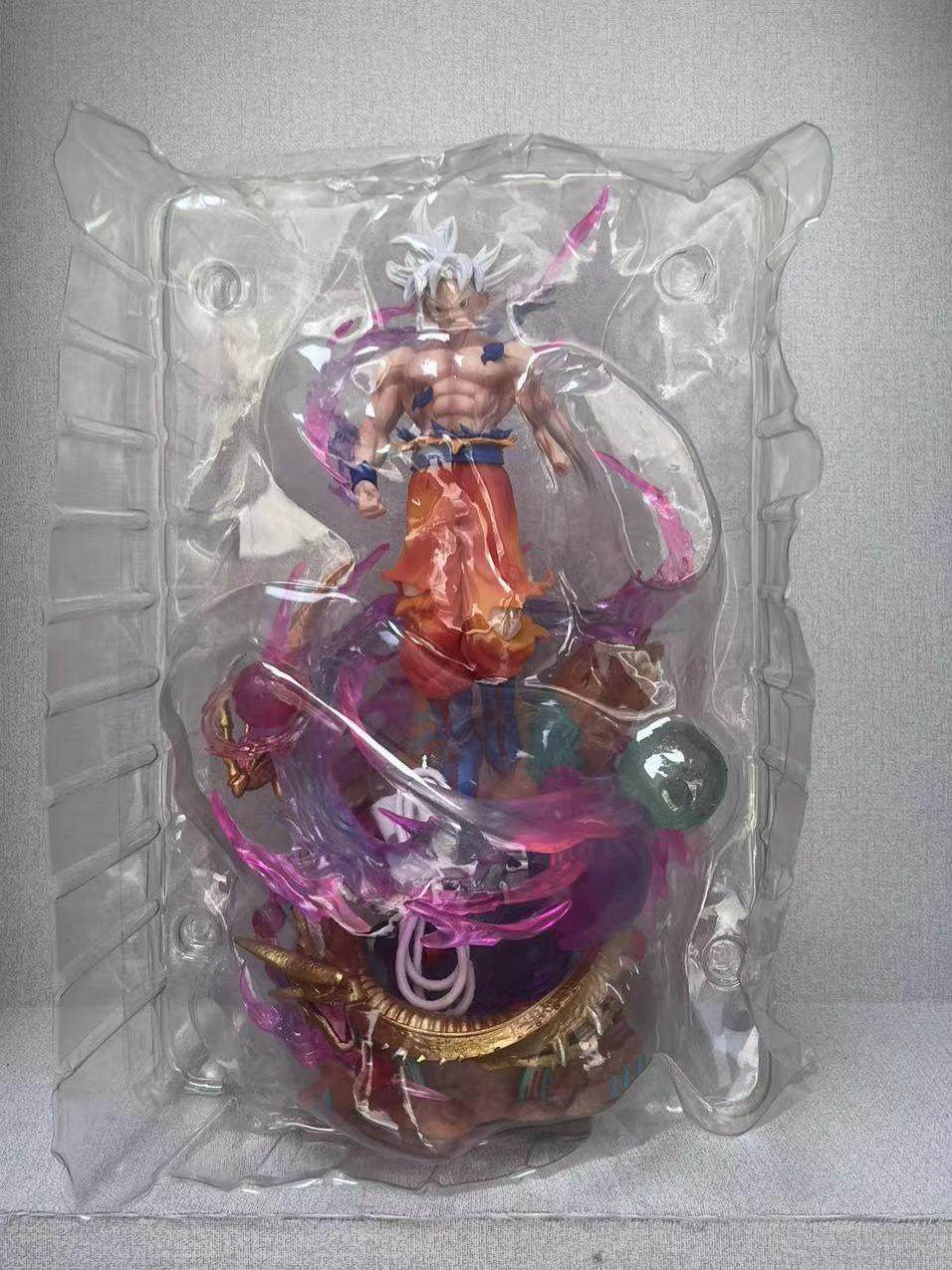 This officially licensed Dragon Ball Z collectible captures Son Goku in his awe-inspiring "Ultra Instinct -Sign-" state. The meticulously sculpted figure features a dynamic pose and a unique built-in LED function that illuminates the iconic silver hair and aura, bringing the power of the gods to life on your display.